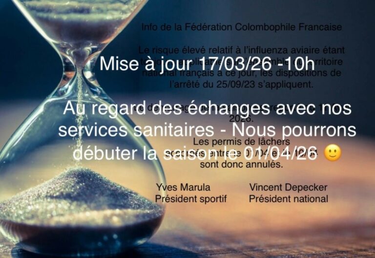 La FCF invite les sociétés colombophiles victimes de telles menaces à les signaler par mail (fcf@nordnet.fr). La FCF agira en conséquence, jusqu’au retrait de la licence de classificateur si nécessaire.